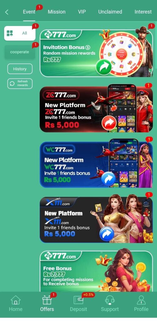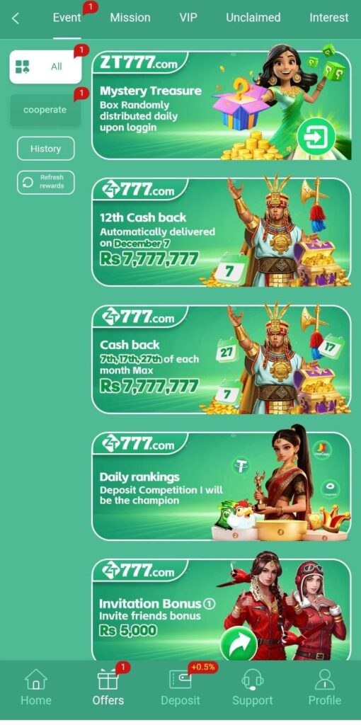 ZT777 encourages users to invite friends through referral links. When a referred friend registers and plays, the inviter earns bonus credits or commissions, creating a passive earning opportunity.